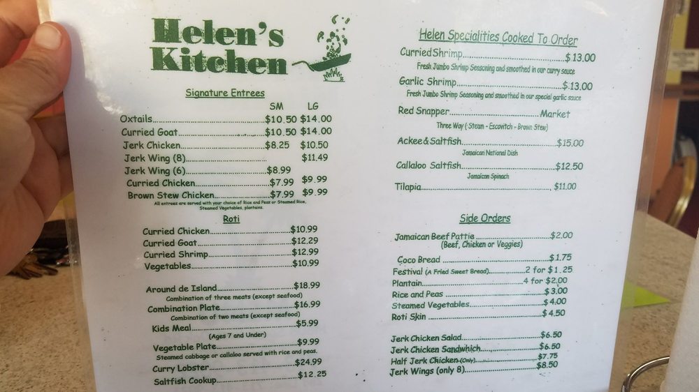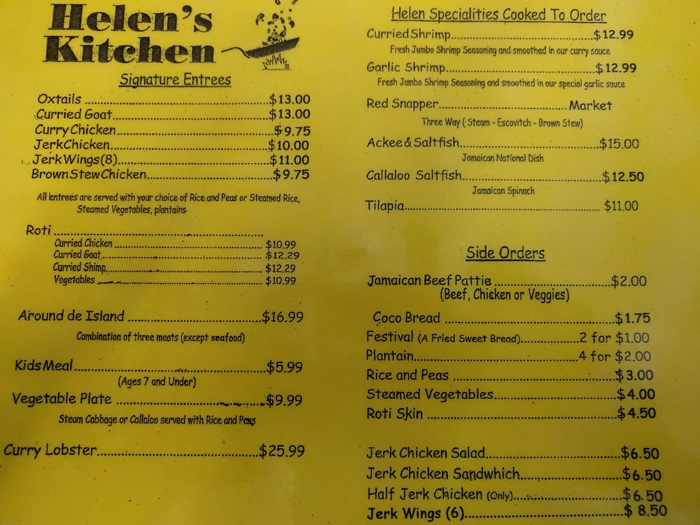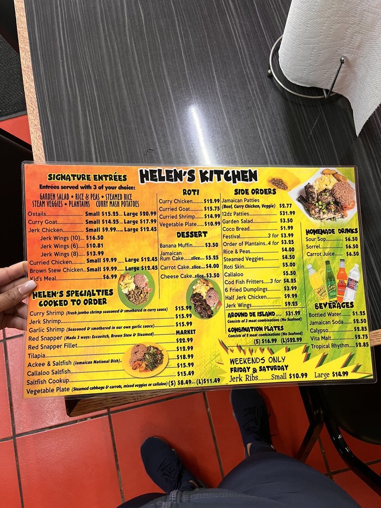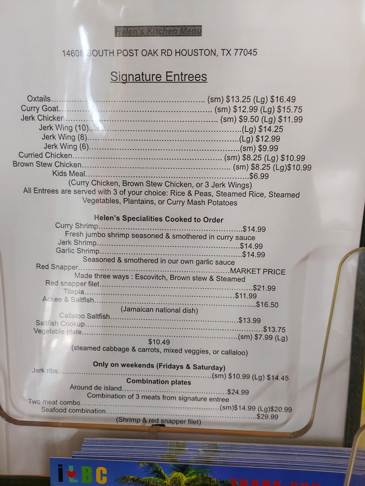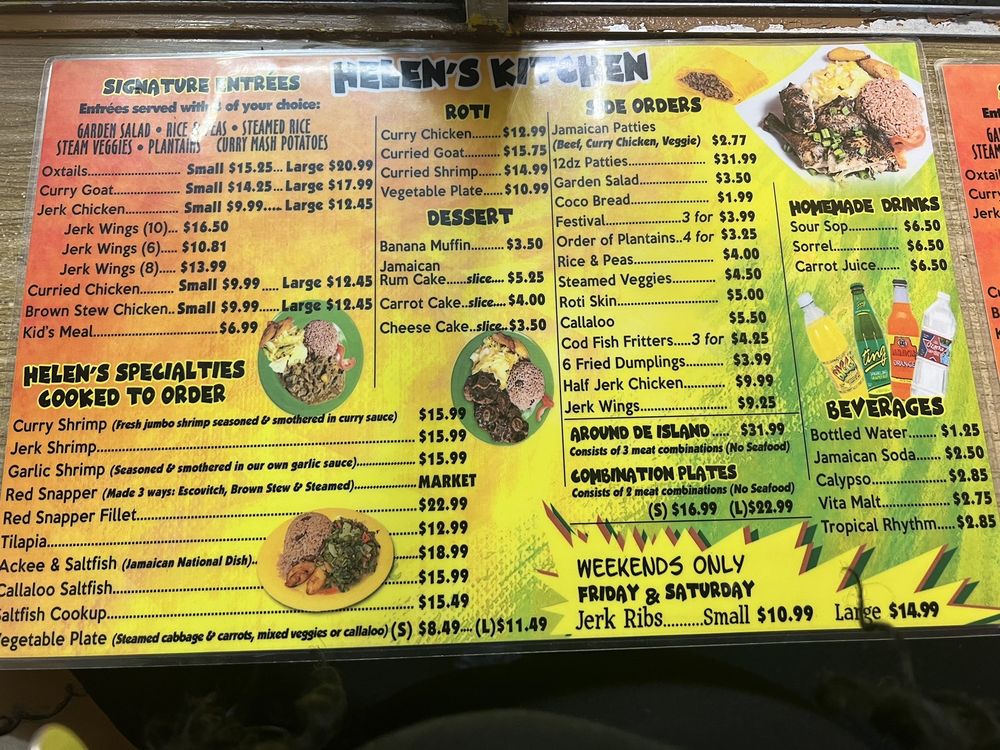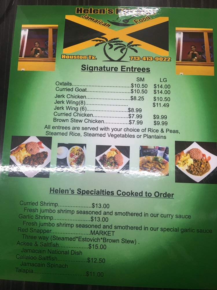 Located in Houston, TX, Helen's Kitchen offers a wide range of Jamaican dishes with many vegetarian options available. From oxtails to jerk chicken and curried shrimp, the menu is filled with flavorful entrees that have received rave reviews from customers. Signature dishes like the Oxtails Favorite and Curried Shrimp are must-tries, according to patrons. The restaurant provides a casual and quiet atmosphere, making it ideal for lunch or dinner with friends and family. With options for delivery, takeout, and reservations, Helen's Kitchen aims to make dining convenient and enjoyable. The spacious restaurant also offers private parking and amenities like Wi-Fi and TV. Overall, Helen's Kitchen is a top choice for delicious Jamaican cuisine in the area.